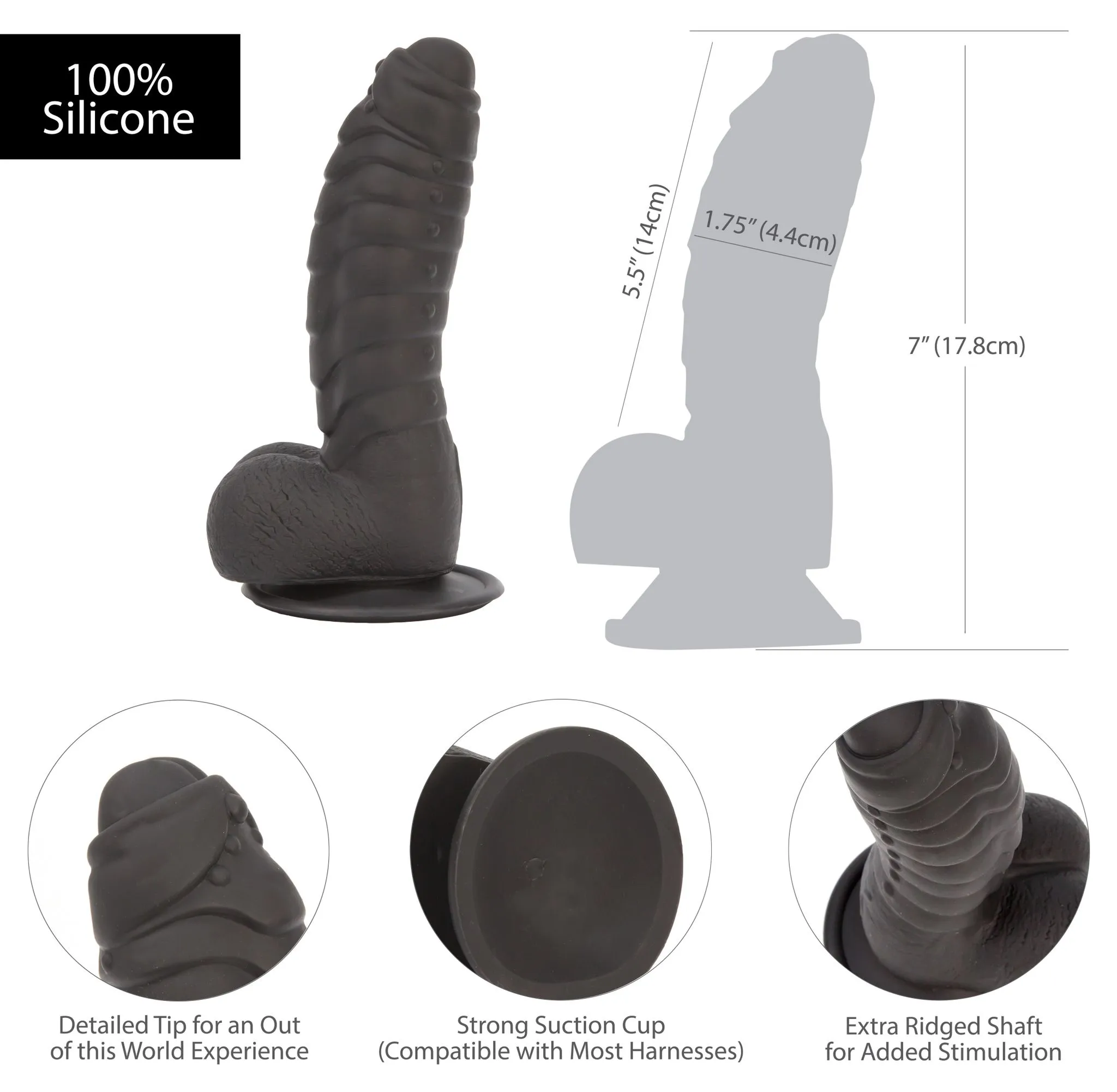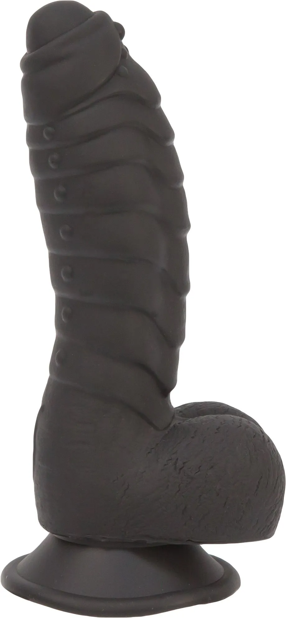 Geniet van intense stimulatie met deze zwarte dildo uit de Addiction collectie! De dildo heeft een dikke, ronde top, een geribbelde textuur op de schacht en een balzak voor extra stimulatie. Dankzij de sterke zuignap kun je handsfree genieten of bind je de dildo vast op een strap-on harnas. Het materiaal is van lichaamsveilig siliconen voor een comfortabel gevoel.