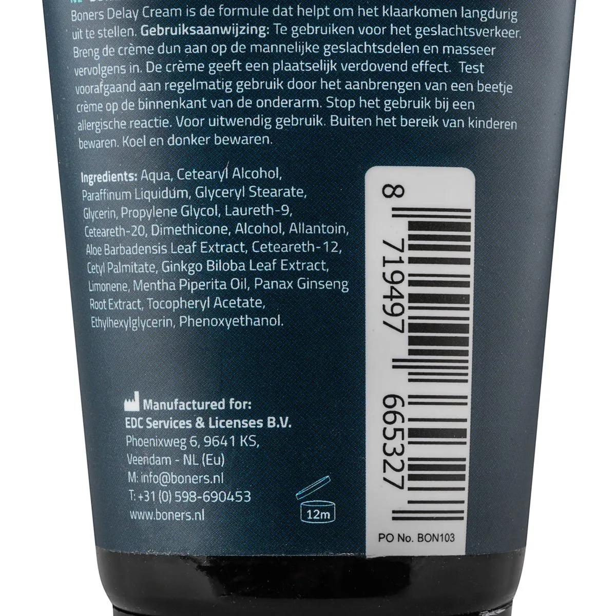 Ga voor eindeloze avonturen met Boners Orgasmevertragende Crème. De crème stelt het orgasme uit en laat jou langer genieten. De zijdezachte formule voelt aangenaam aan en is zuinig in gebruik.
