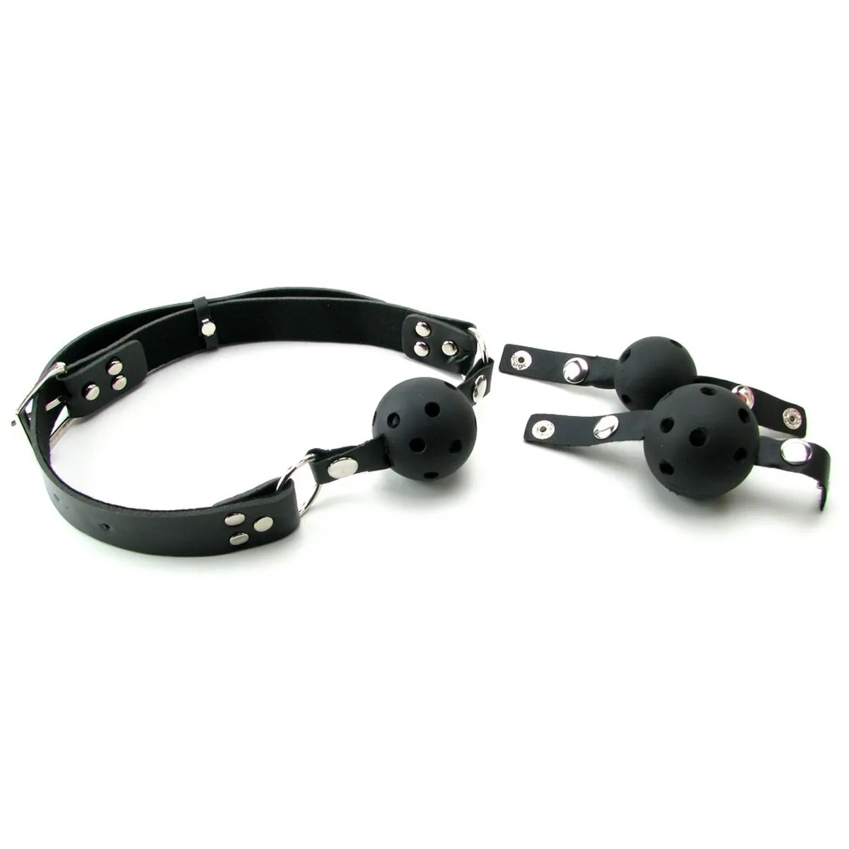 Het Ballgag Trainingssysteem is perfect voor beginners die nieuw zijn op het gebied van gagging. Deze set heeft 3-gagbals om te trainen. Je begint met de kleinere mondknevel en je werkt langzaam op naar een grotere. De mondknevels zijn te verwisselen met de riempjes en zijn uitgevoerd met gaatjes om het ademen te vergemakkelijken. De zwarte riempjes zijn eenvoudig aan te passen naar nagenoeg iedere maat en het geeft je directe controle over je partner.