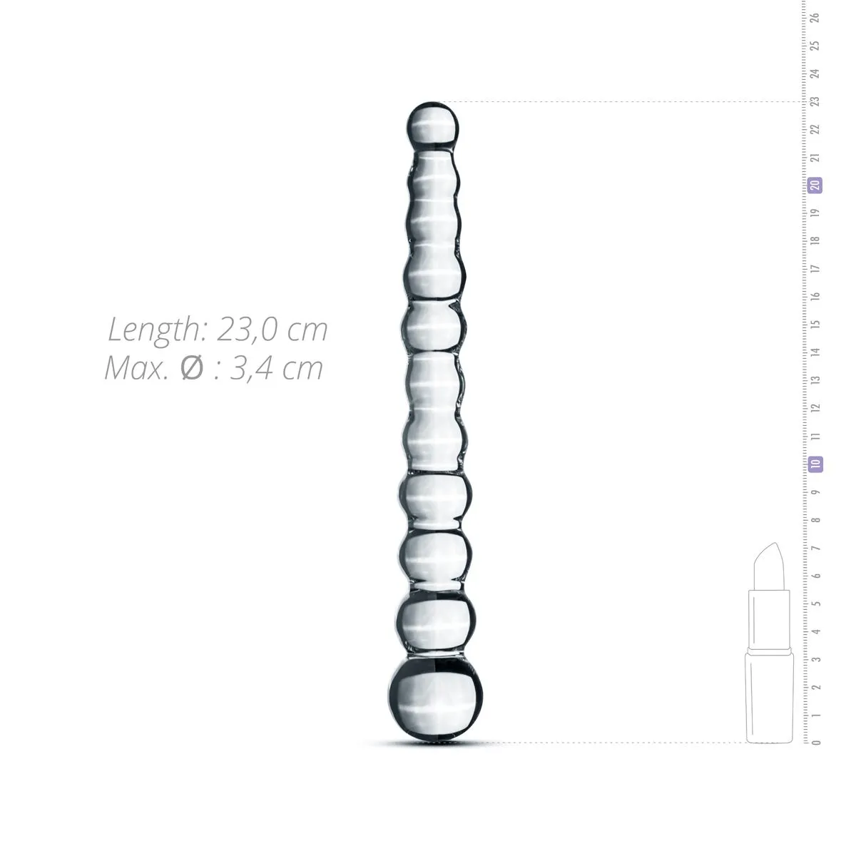 Deze glazen dildo is op zijn plek in elk nachtkastje. De dildo is sterk, duurzaam en kan zowel vaginaal als anaal gebruikt worden. De bolvormige schacht heeft een smalle top en grotere onderkant voor makkelijke penetratie. Het glas voelt sterk aan en is zwaarder dan de standaard dildo. Daarnaast zijn glazen sextoys veilig te gebruiken in combinatie met alle soorten glijmiddel en latex condooms. Ook kun je deze glazen dildo verwarmen of verkoelen. Houd hem even onder de koude of warme kraan en ontdek je favoriete temperatuur.