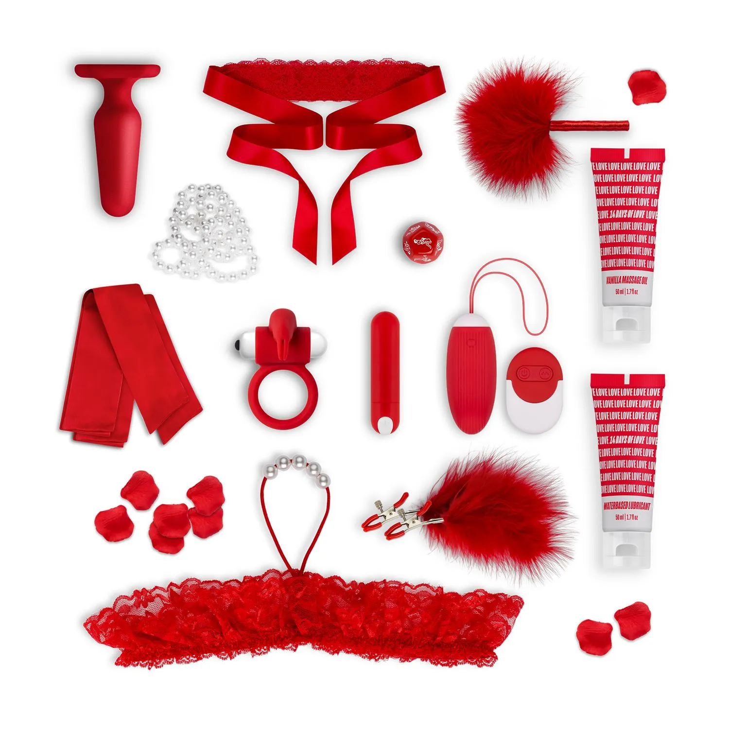 Maak een onvergetelijke, unieke dag met onze 14 Days of Love Box! Of je nu op zoek bent naar een cadeau voor hem of voor haar, deze gift box zit vol met spannende speeltjes voor koppels. De hartvormige doos zit vol met unieke toys en accessoires die jullie in romantische sferen gaan brengen. De gift box heeft 14 aparte vakjes, maak elke dag een vakje open en experimenteer samen met jouw partner met het speeltje van die dag. Probeer 14 dagen lang iets nieuws uit, maak het nog spannender in de slaapkamer óf daarbuiten met dit cadeau! Voor een spannende en een romantische avond moet je bij EasyToys zijn! Verras jouw geliefde met een romantische cadeauset.