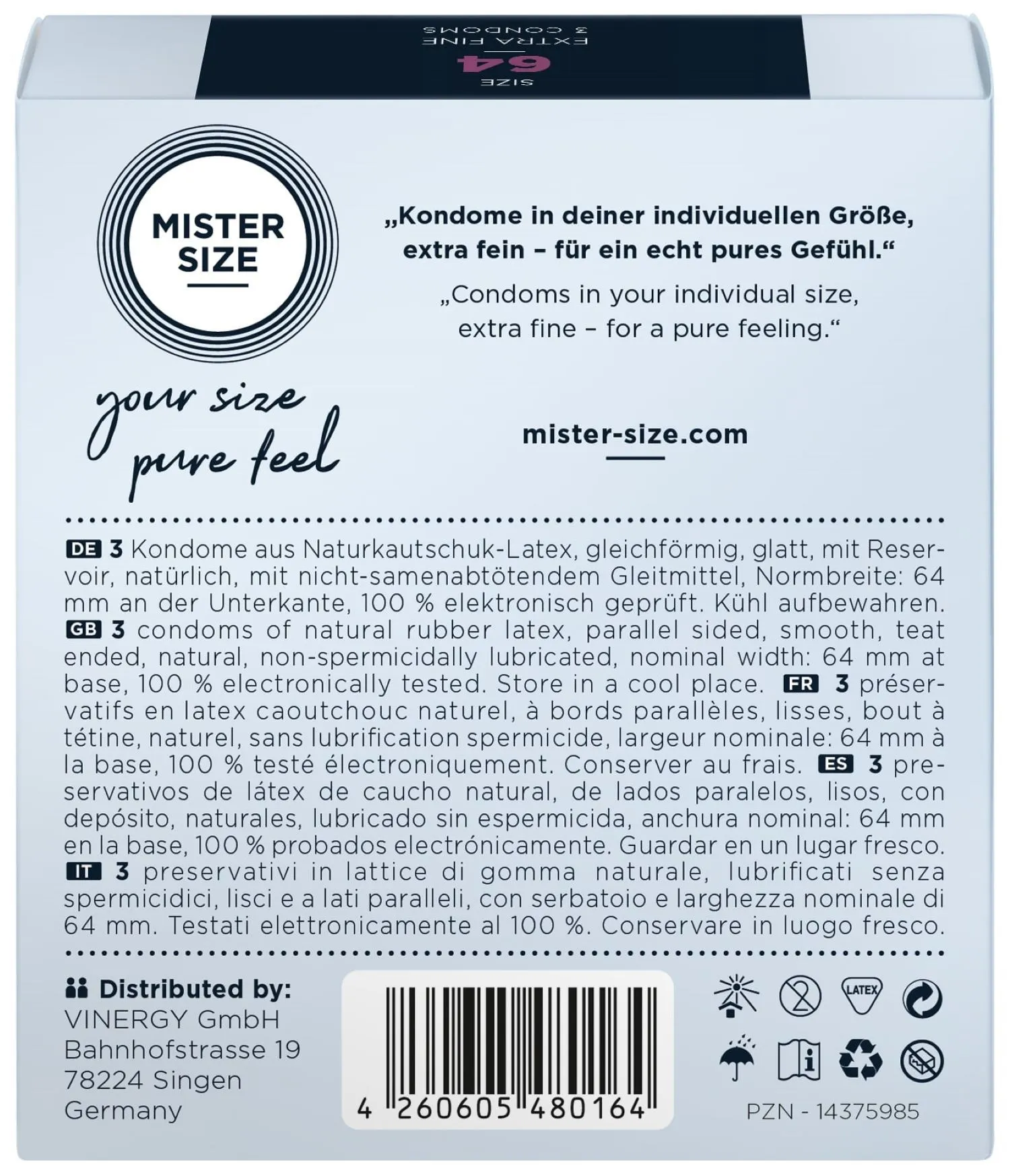 De condooms van het Duitse merk Mister Size worden gemaakt in diverse maten, zodat je altijd een perfect passend condoom kunt vinden.