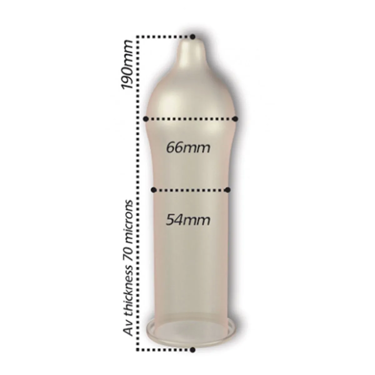 De Pasante Rugular is een standaard anatomisch gevormde condoom met een gemiddelde nominale breedte van 54mm, met een ruimere top. Doordat het condoom meer ruimte biedt voor de eikel, zal deze prettiger dragen en meer gevoel geven tijdens de seks.