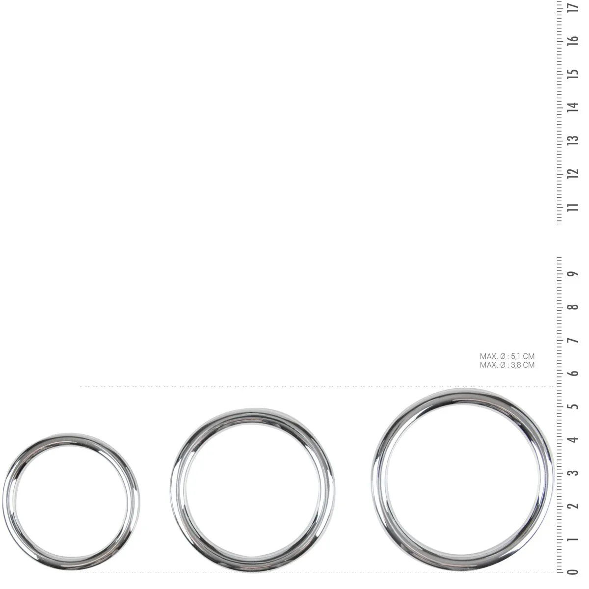 Ontdek je perfecte maat met deze cockring set van Sinner Gear. De set bestaat uit 3 metalen cockringen die om de penis, balzak en eikel gedragen kunnen worden. De ringen zijn sterk, zwaarder dan de meeste cockringen en te gebruiken met elk glijmiddel. Afmetingen ringen: Klein: binnendiameter 4 cm, buitendiameter 5,00 cm. Medium: binnendiameter 4,50 cm, buitendiameter 5,50 cm Groot: binnendiameter 5,00 cm, buitendiameter 6,00 cm
