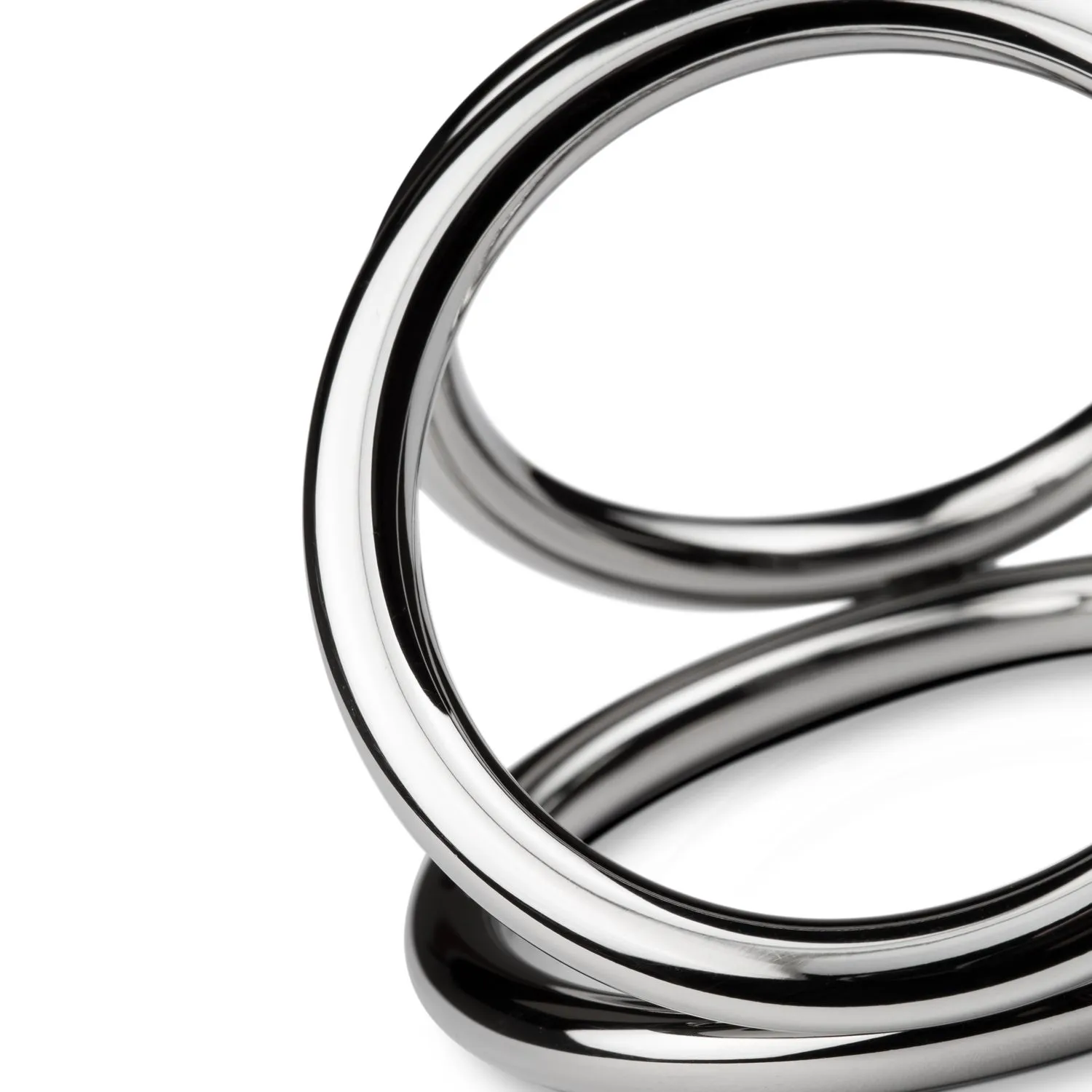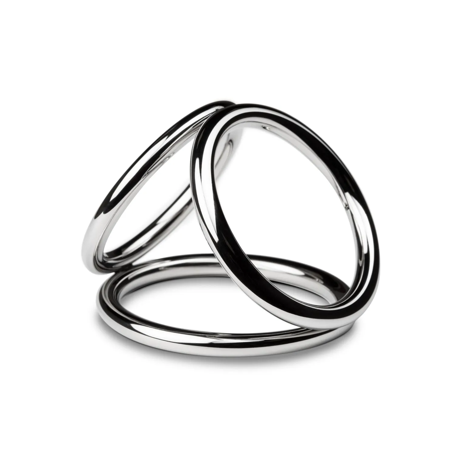 De Triad Chamber Cock en Balring is een luxe cockring uit de Sinner Gear Unbendable serie van EasyToys. Deze toy is volledig gemaakt van nikkelvrij metaal en voelt daardoor zwaarder en gladder aan dan elk ander seksspeeltje. Deze cockring heeft 3 ringen waar je de ballen en de (half stijve) penis in plaatst. Dit zorgt voor een langdurige erectie en een nog intenser gevoel. De cockring is te gebruiken met alle soorten glijmiddel en snel en grondig te reinigen. Afmetingen binnen diameter: Grote ring is 5 cm, deze is bedoeld voor om de ballen en penis. Medium ring is 4.5 cm en is bedoeld voor om de ballen. De kleinste ring is 4 cm en gaat om de penis.